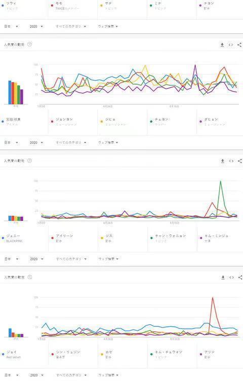 而2020年在日本搜索最多的韩国女爱豆里,令人惊讶的是,TWICE竟然是日本相当火爆的女子组合,虽然韩国的娱乐圈都非常喜欢出日文专辑,为的就是能顾及到日本的粉丝,在日本开巡回演唱会,韩国经纪公司,看中的就是日本粉丝的属性——“不差钱”“忠诚”“长情”。