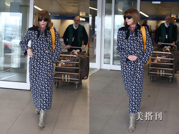 时尚女魔头安娜现身机场,及踝大衣攻气十足,气场全开无人敢惹