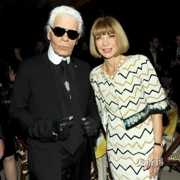 这两位在的时尚圈可谓是呼风唤雨,舍我其谁的程度,两人也是多年的好友。安娜这位冷面女王,也只有在老佛爷面前才会露出难得的笑容。