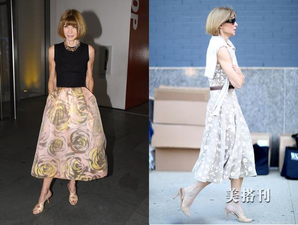 安娜的标志性符号就是一头倔强的bobo头,她鄙视裤子,将它视为怪物,全年只穿裙子,鞋子和裸色交叉带凉鞋。也正是安娜让人见识到原来BoBo头也可以自带女王气场,和概念中的可爱属性完全没有关系。