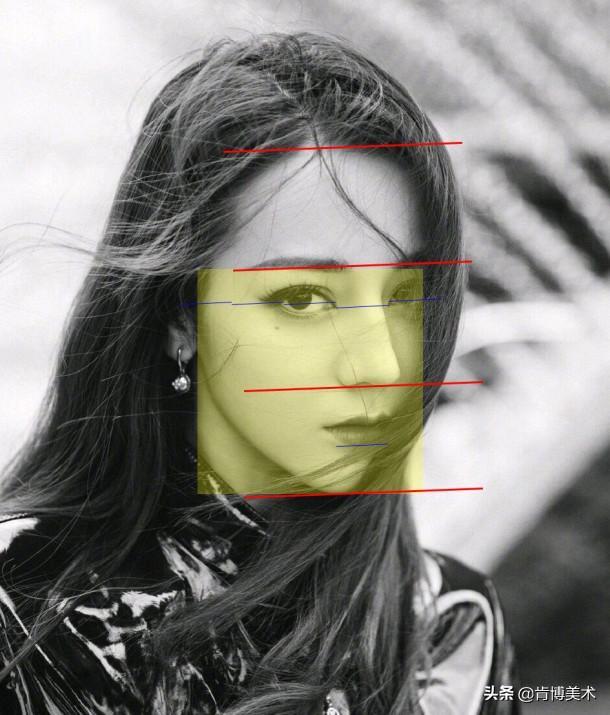 今晚来画很多人心中的女神—迪丽热巴,首先观察分析原图,一般来说,两个内眼角的距离就是眼睛的宽度,这时候,热巴女神的特征就出来啦~她的眼睛比较大,眼睛要比两内眼角宽。