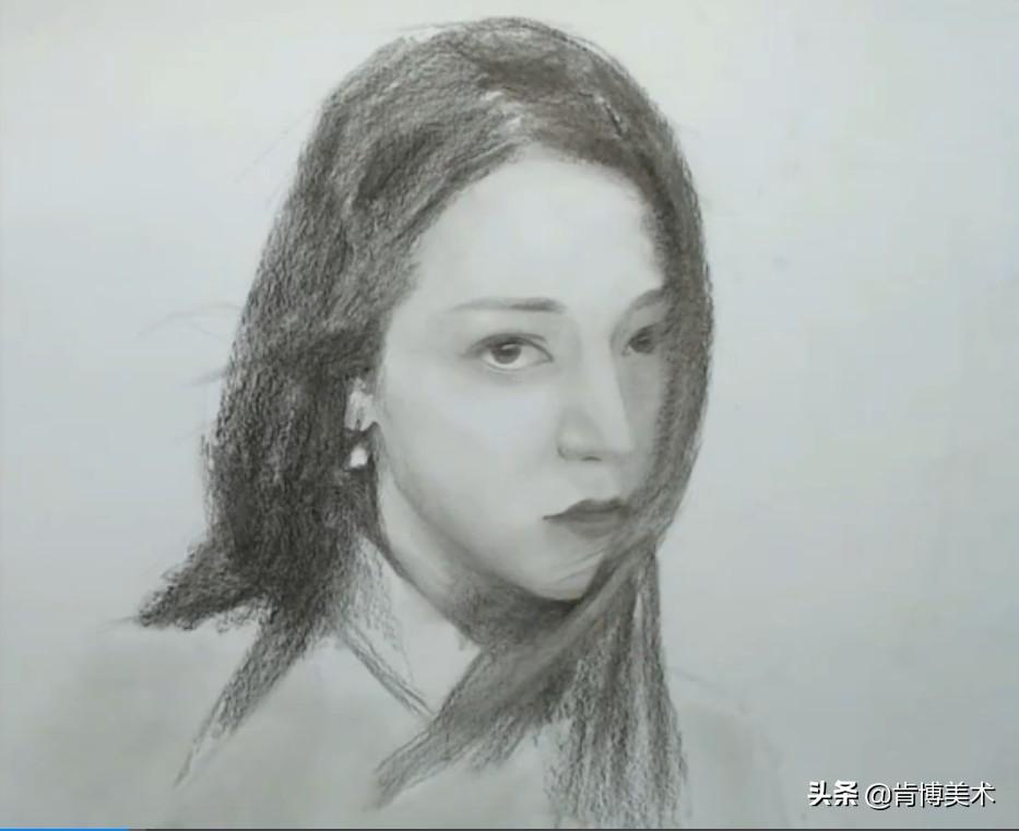 接下来开始塑造,拿出软炭深入刻画,最后用橡皮擦出头发丝。