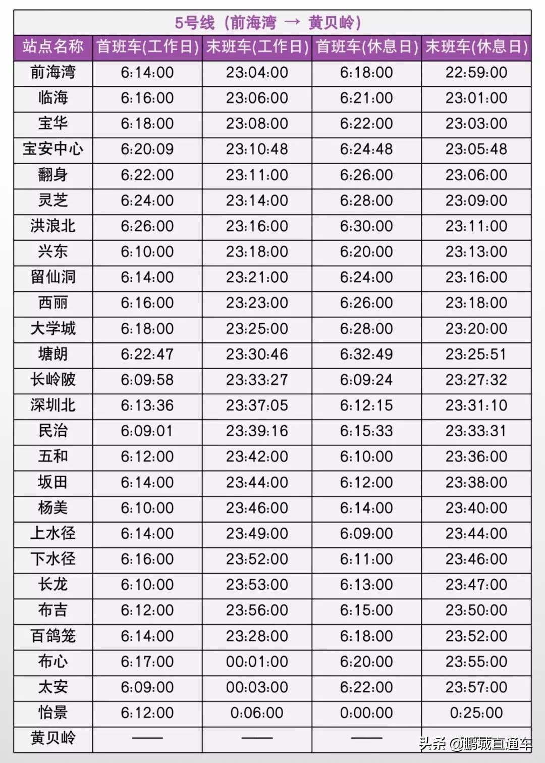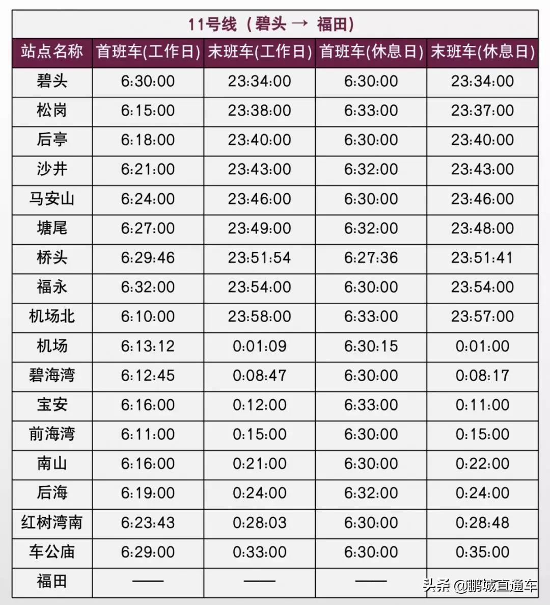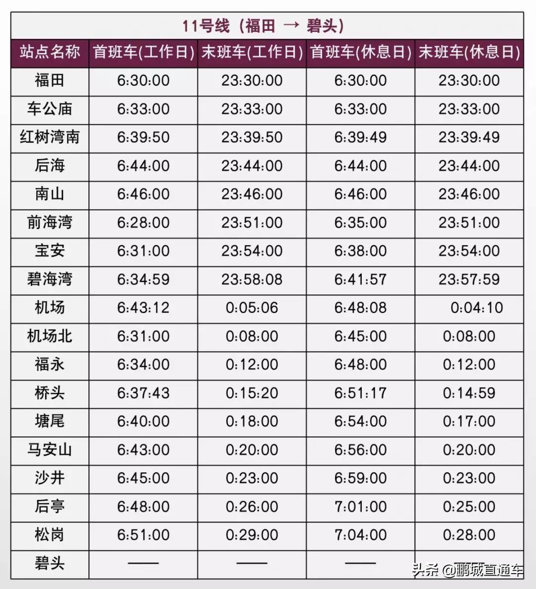 @深圳人,上班不迟到!快来收藏这份最全深圳地铁运营时间表