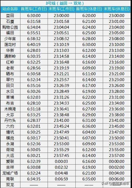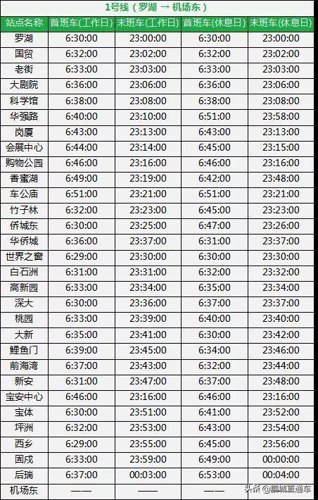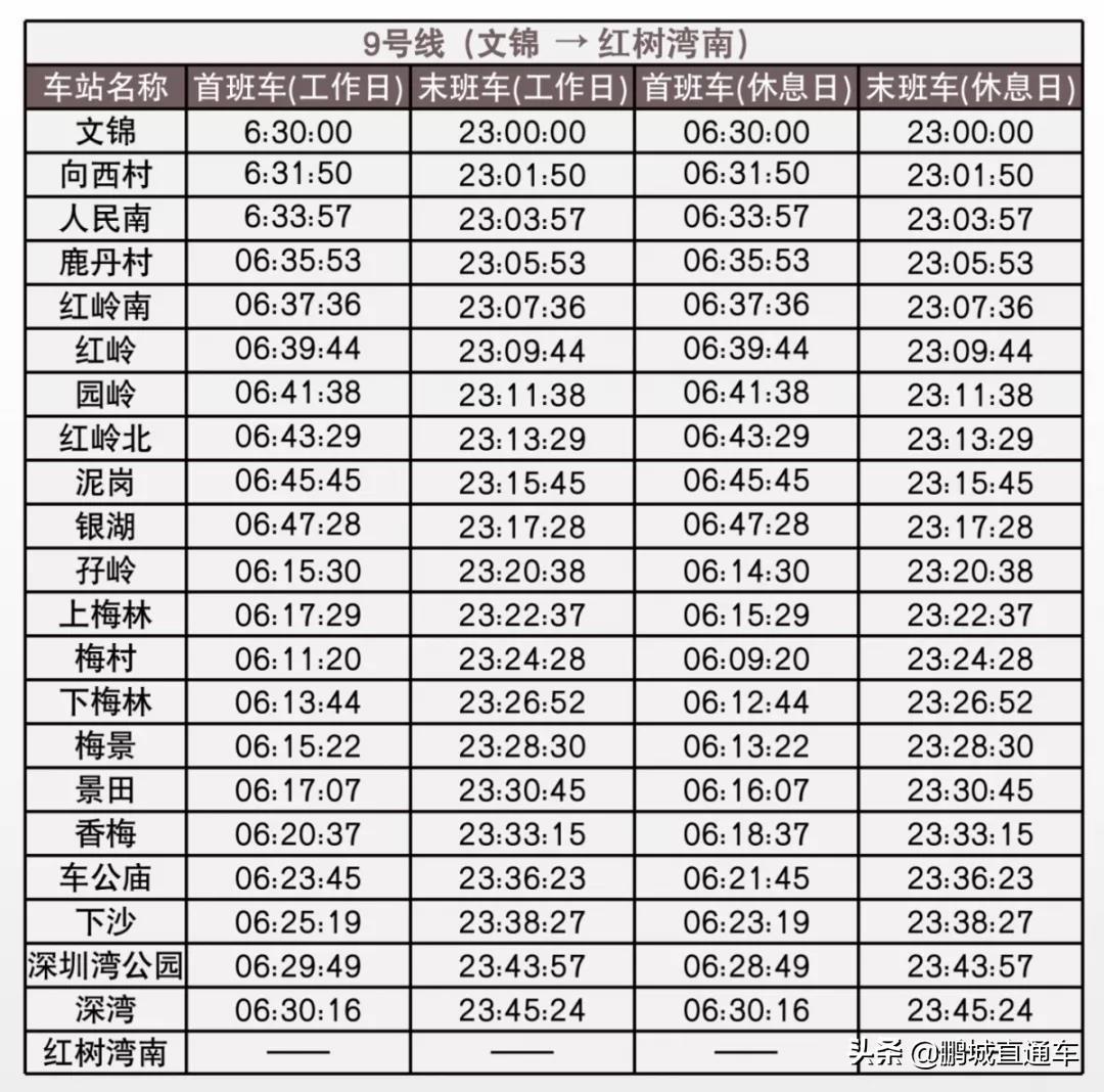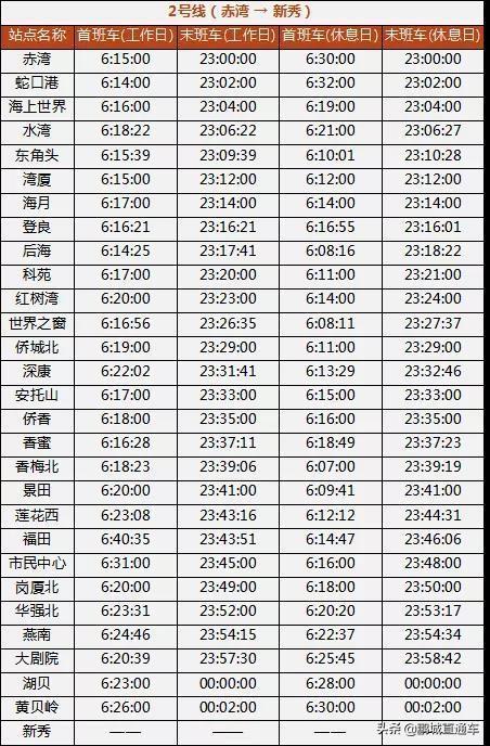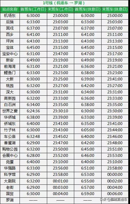 对于每天早出晚归的深圳上班族来说,可能都需要这样一份表,能让他们最早赶到公司,还不错过末班车。为此,据深圳地铁信息,整理出深圳所有地铁线路运营时间表。一起来看看吧。