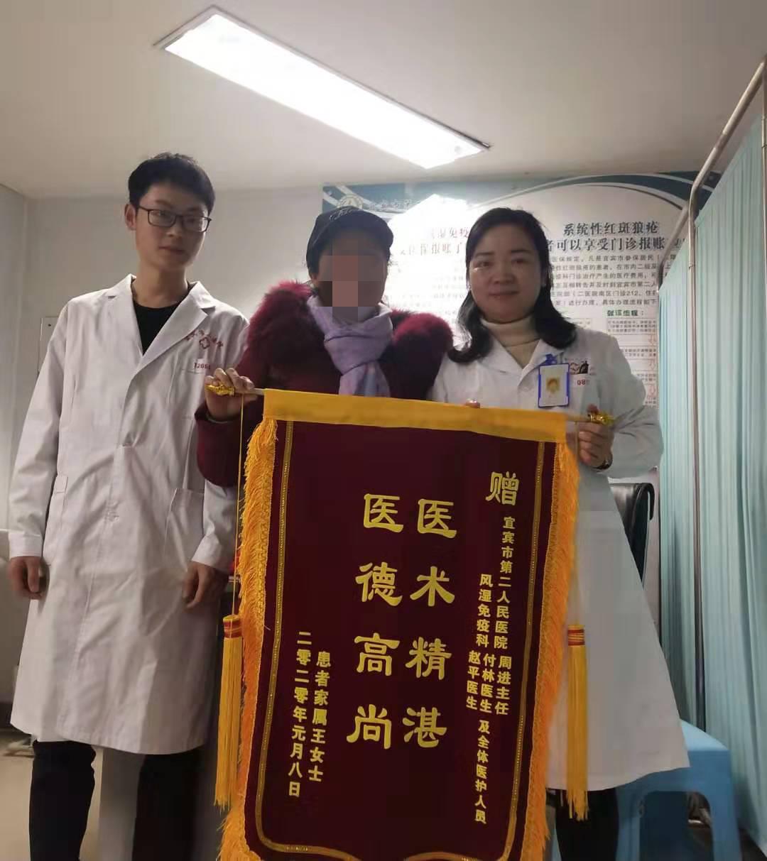 近日,宜宾市第二人民医院•四川大学华西医院宜宾医院风湿免疫科又收到了来自患者文某送来的“医术高明 医德高尚”锦旗,以表达对科室医护人员的谢意。