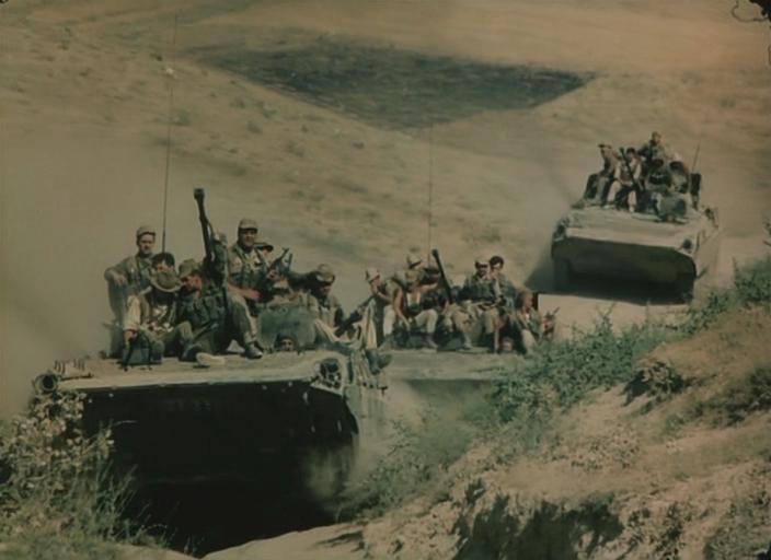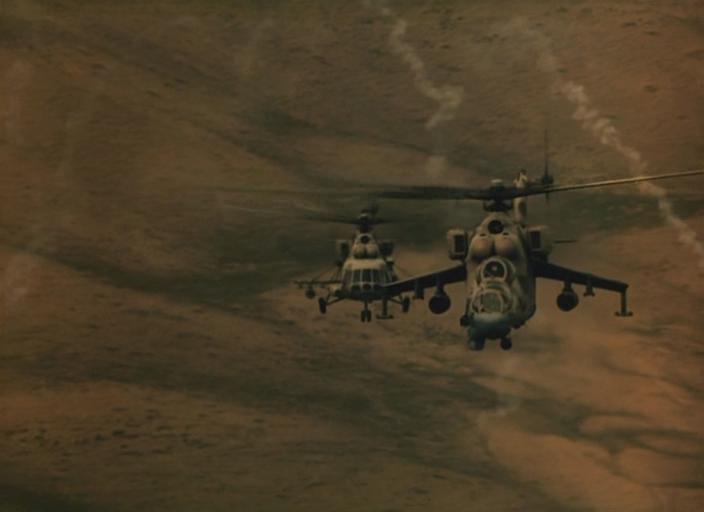 结尾时铺天盖地的雌鹿直升机越过国境线飞向苏联那个镜头,是苏联战争电影的巅峰时刻。这部电影之后,「苏联」就成为历史了。雌鹿直升机抛射的热焰弹是献给那些战士的挽歌。