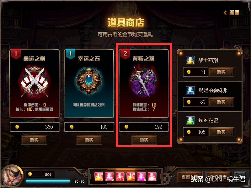 商店顾名思义是出售物品的地方,商店可以丢弃一张手上的卡牌,然后还可以购买其他的卡牌,蜗牛君建议前面多走一些商店的路线,具体原因蜗牛君后面还会讲到。