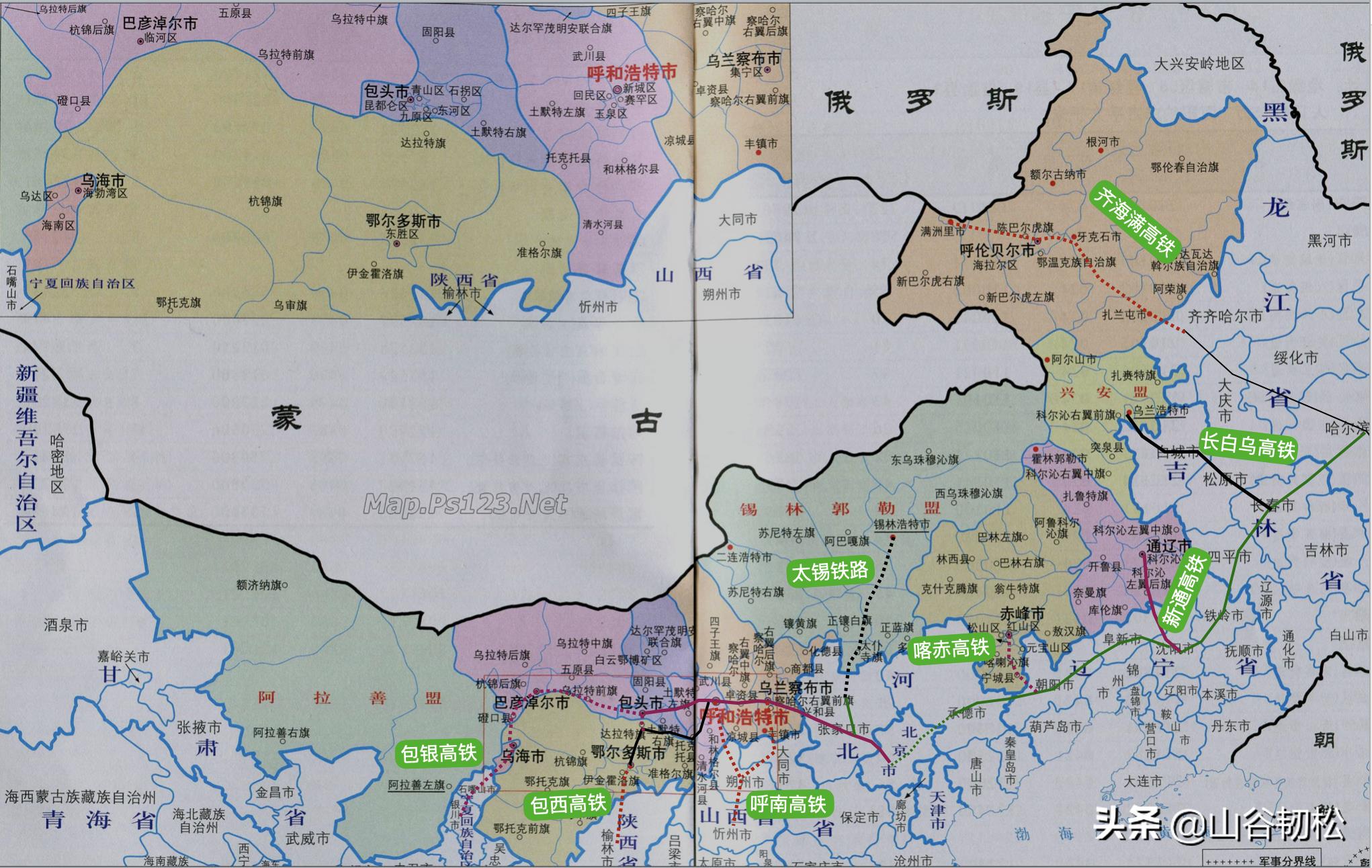 最后是东部五地市盟的太锡铁路、喀赤高铁、新通高铁、长白乌铁路、齐海满高铁,他们分别连接了邻省的北京、沈阳、长春、哈尔滨等省会、直辖市。各条线路的详细情况如下: