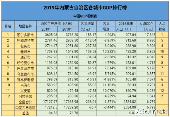 内蒙古自治区有2539.6万常住人口,面积却高达118平方公里。2019年GDP总量在全国排名20,人均排名11,比较靠前。在省内各市的GDP总量的较量中,鄂尔多斯、呼和浩特、包头位列前三。在人均GDP上,鄂尔多斯由于拥有丰富的自然资源,遥遥领先于其他各市。