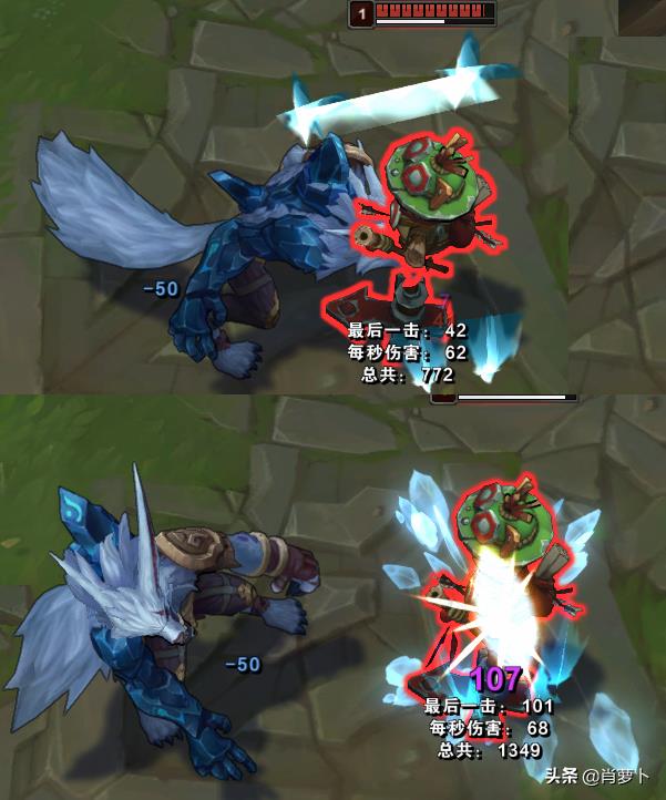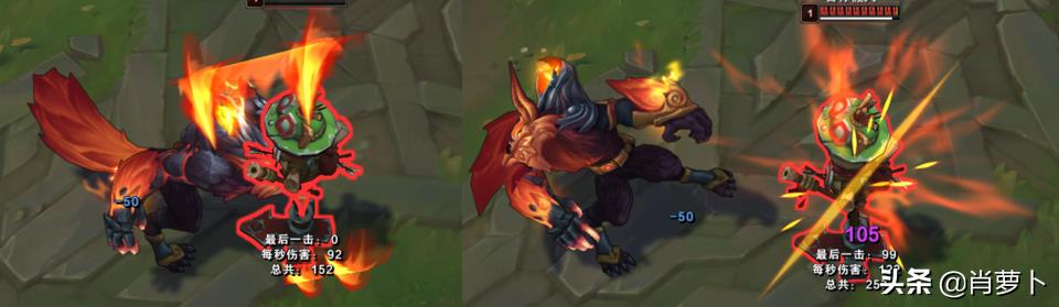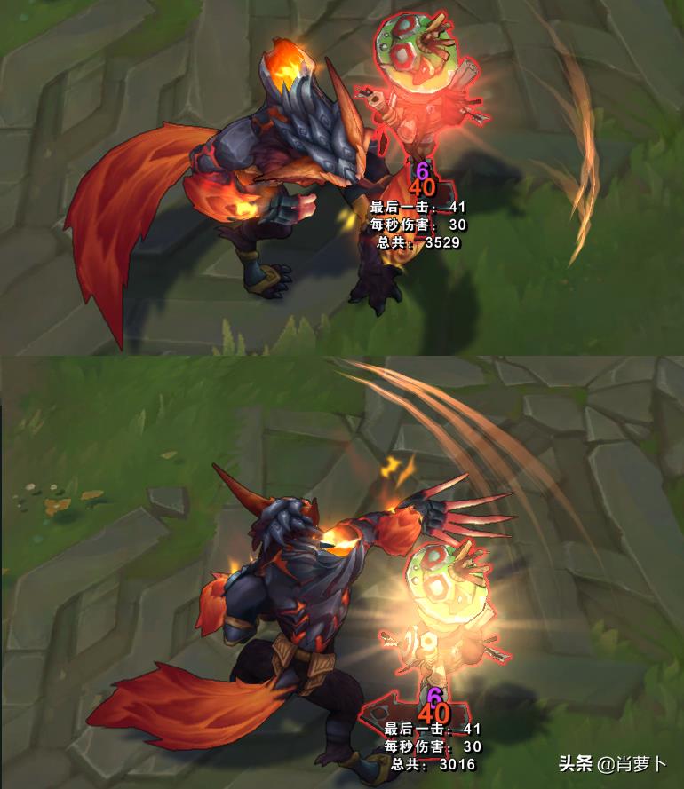让我们看看与之相反的火系特效皮肤的火牙狼人表现怎么样。