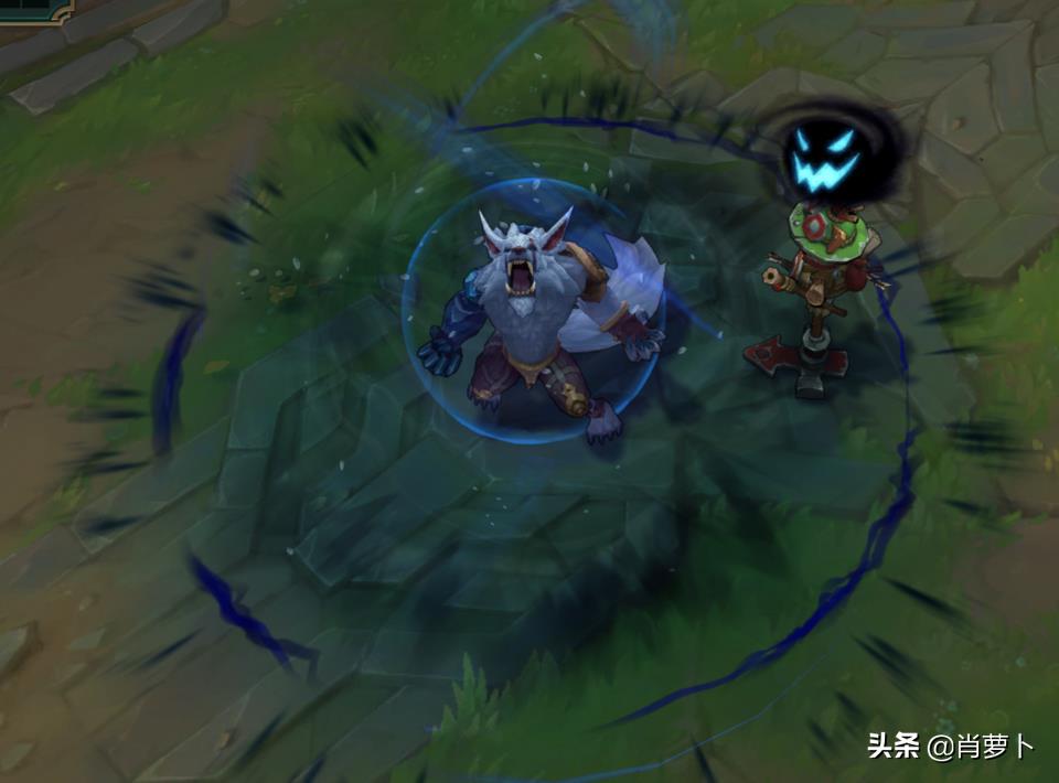 奥拉夫技能特效更新之后,Q的轨迹带有特效,斧头的落点也增加了特效,开启W时的光效和E的闪电特效以及R技能开启后的全身发光都显得更为霸气了。