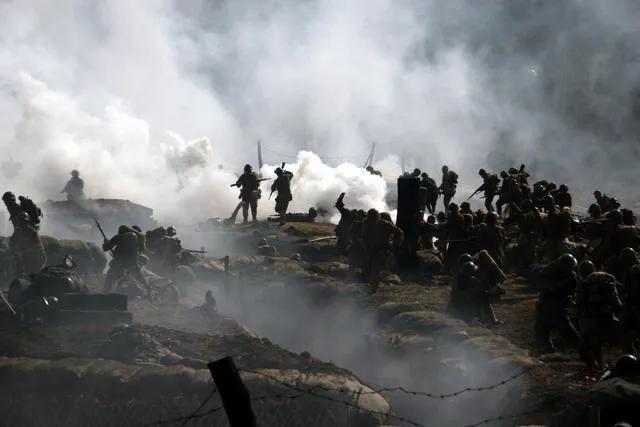 平日缓陡的小山坡都让第10军士兵挖掉了半边,削成为“绝壁工事”让他们正面进攻毫无胜算。即便架起梯子也是找死,因为迎接他们的,是第10军三个一束、五个一捆、漫天飞雨一般的“集束手榴弹”。