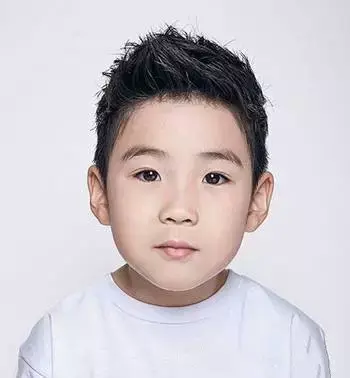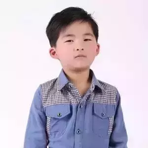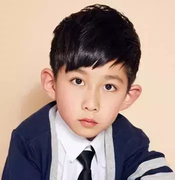 6.这款造型颇显小暖男范,厚重的短发发型设计,加上精致秀气的五官,将小少年的清新感展现出来。