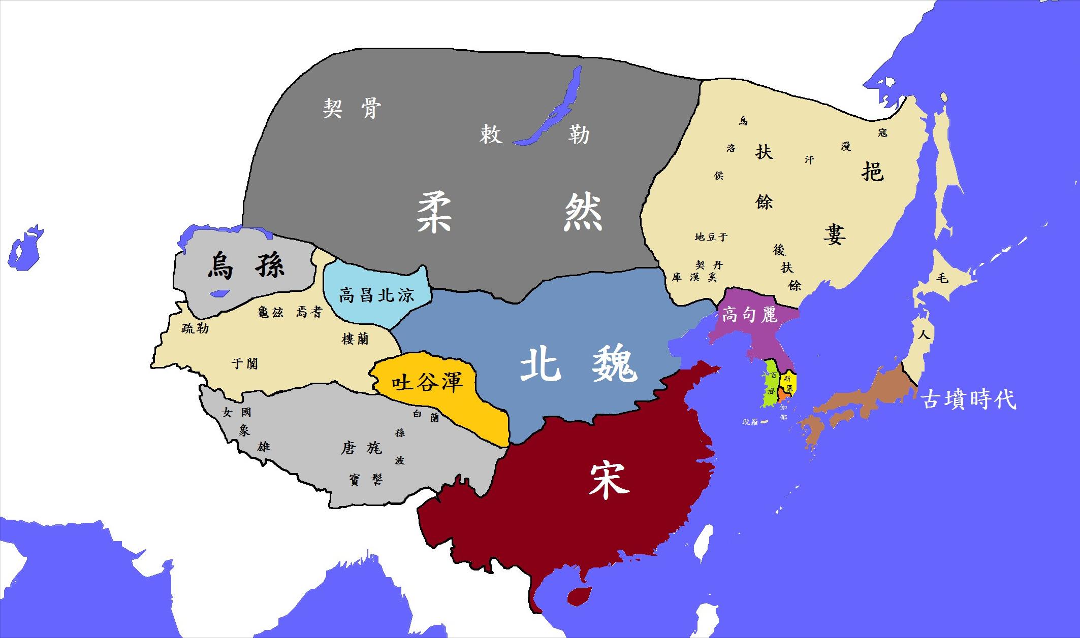 南宋文帝元嘉二十年、北魏太武帝太平真君四年(癸未,443年)九月,北魏四道出攻柔然,柔然远遁。