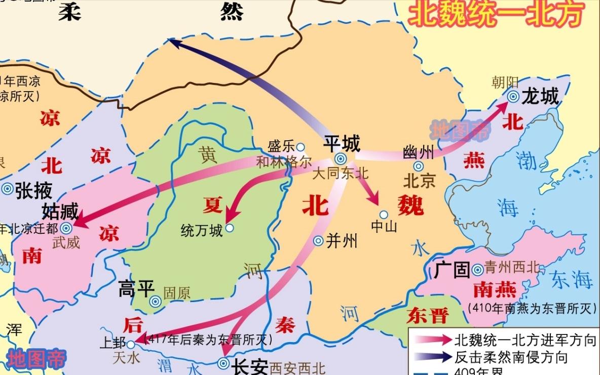 同年四月,66岁的北凉武宣王沮渠蒙逊薨,其子沮渠牧犍嗣位,是为北凉哀王。