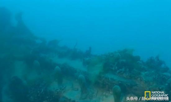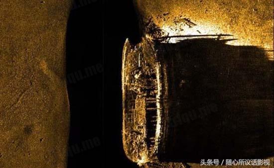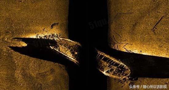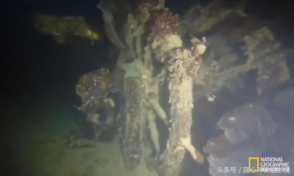 2014年被发现的“惊恐号“远程操纵潜水器拍下的舵轮