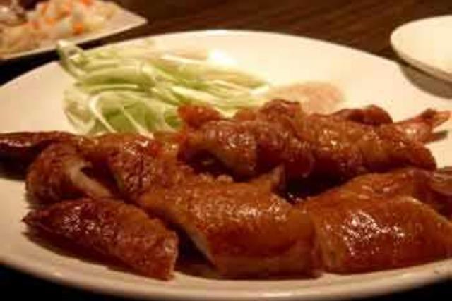 原料:拆骨肉(白煮猪头肉上拆下的肉)、猪大肠各200克,泰椒15克,葱节5克。