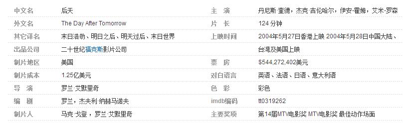 而就在此时,霍尔博士得知儿子山姆(杰克·吉伦哈尔饰)只身前往纽约去营救女友,于是决定冒险前进纽约在冰天雪地中展开救援行动。这时候灾难从纽约开始,曼哈顿摩天大楼遭到强烈旋风的袭击,大部摧毁。突然间,地铁隧道里涌出狂暴不止的汹涌洪水。大水吞噬了纽约,淹没了美国,欧洲也在洪水之下不复存在。此后冰层和白雪覆盖了整个地球表面,冰期时代开始了。