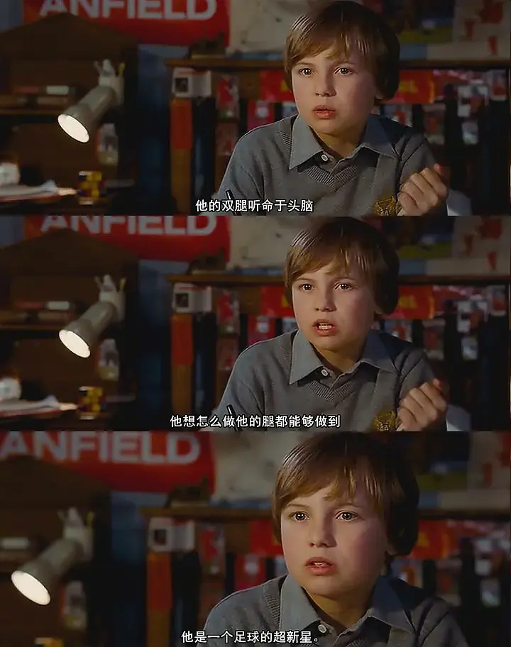 整个电影基本是围绕着“You'll Never Walk Alone ”这一主题进行的。Wil 在很小的时候就失去了妈妈,爸爸失踪了三年,老师也不是很喜欢他,但是他并不alone,他有他的好朋友,他有Dalglish,他有Gerrard,他有Liverpool,他有信仰。Alek 由于一件偶然的事件,把自己alone起来,但是他也有自己的朋友,并通过Will开始去解开自己的心结,并最终得到了对方的谅解,完成了自己的自我救赎。
