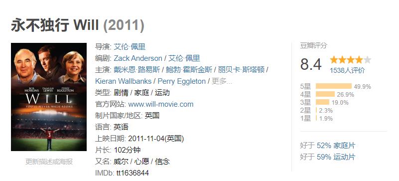 3. 《永不独行》豆瓣评分:8.4分