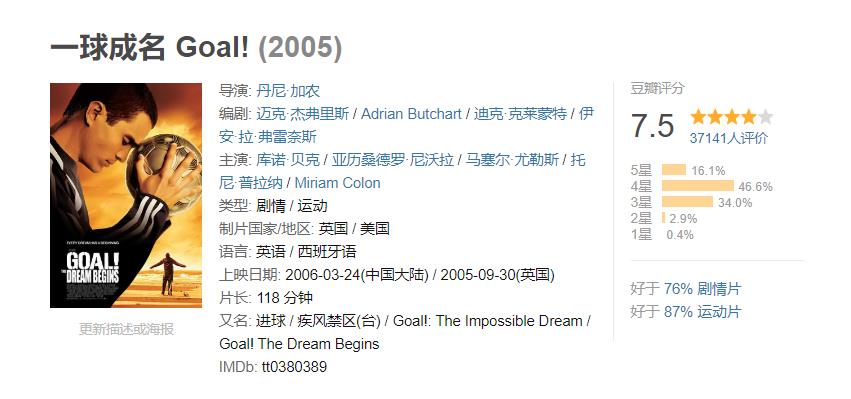 9. 《一球成名》豆瓣评分:7.5分