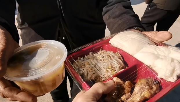山东农村爱心快餐,一份3块钱,有鱼有排骨,网友:不怕变老了