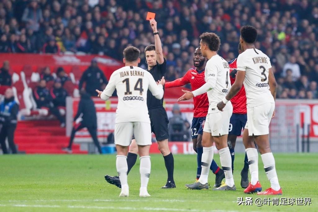 巴黎圣日耳曼开场7分钟就落后,穆尼耶不慎自摆乌龙;不过第11分钟,姆巴佩右路强势突破后传中,贝尔纳特后点推射扳平。比赛的转折点发生在第36分钟,里尔后场长传反击,贝尔纳特只能拉倒佩佩,主裁判直接红牌罚下贝尔纳尔!