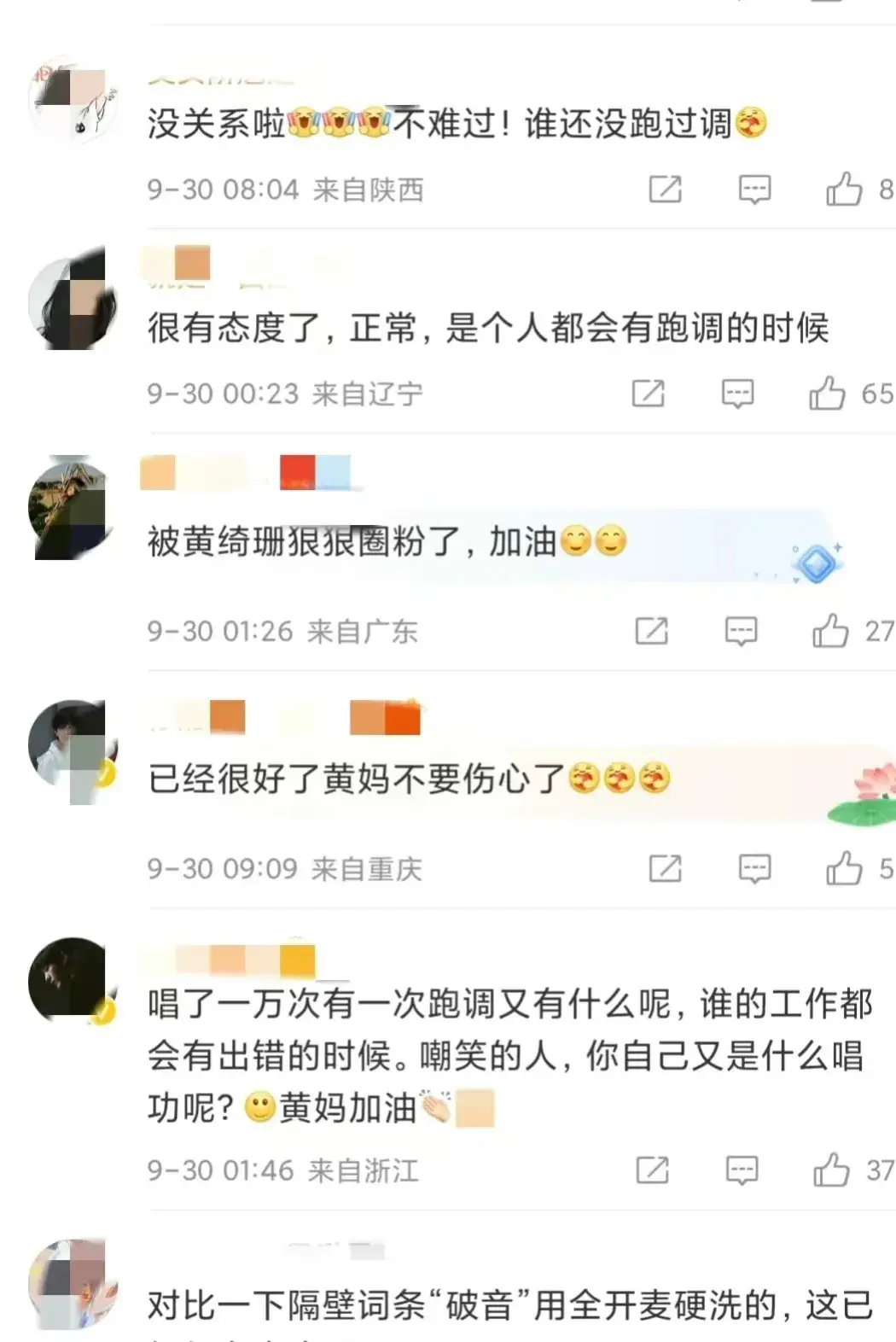 虽然黄绮珊昨晚的演唱并不完美,但这位歌手对音乐和观众的态度非常真诚。相较于其他假唱歌手,她已经表现得非常真诚了。大家应该多一些包容,实力派歌手的一次失误就被热搜挂几个小时被大家骂,而那些混水摸鱼的人却有一大堆粉丝喊哥哥姐姐唱得真好。虽然大家对黄绮珊这类歌手的要求更高,但适可而止也是好的。