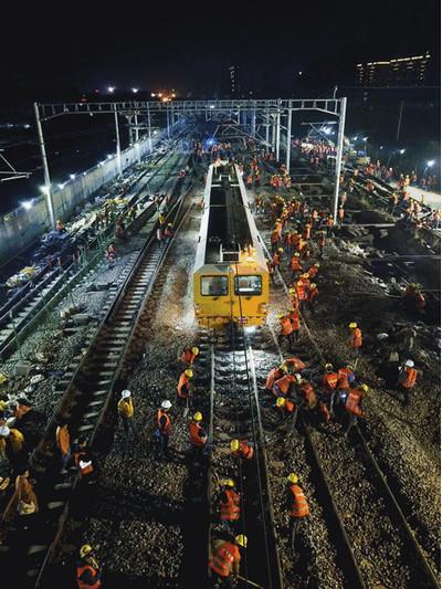 从18:30 开始,不到9小时的时间里,完成了道岔拆铺、拢口拨接、信号换装等所有作业。数十台施工机器同时运转,1500余名铁路工人不眠不休,耗时9小时成功完成这一壮举!