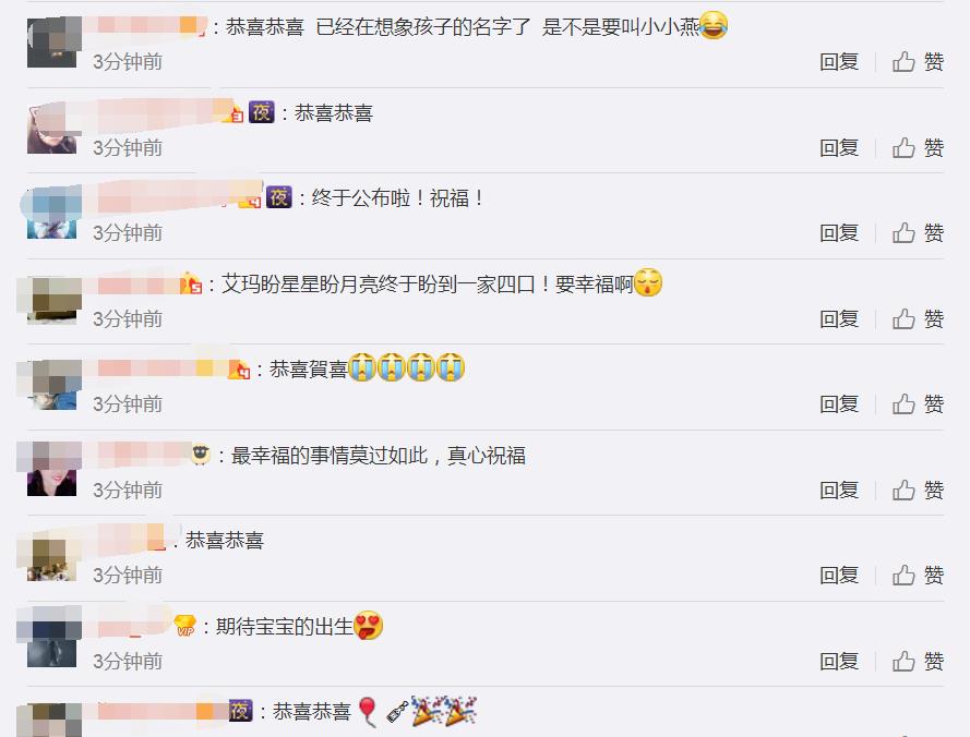 网友得知好消息后纷纷送祝福:“哇!小燕子居然怀孕了”,“好奇小燕子和尔康的孩子的名字”,“最幸福的事情莫过如此,真心祝福”。