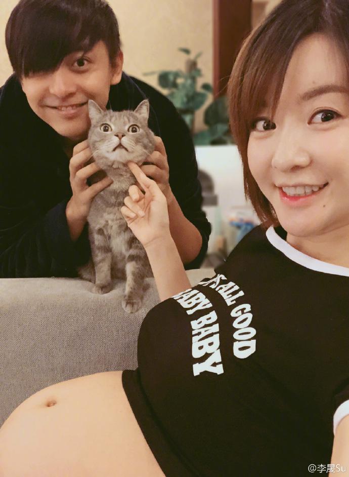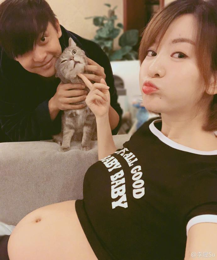 照片中李晟身穿黑色T恤素颜出镜,大方晒孕肚十分明显,目测至少已经6个月了,宠物猫咪惊奇的表情充分表达了网友的心声。