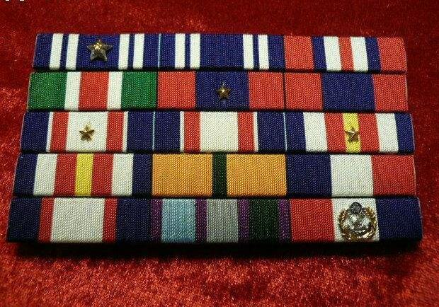 勋章,是军人的荣誉,但如果勋章太多,挂在胸前一是繁琐,二是太重,于是就有了勋略表,也就是把勋章的绶带图案制作成标准大小的彩条,因为每一种勋章的绶带图案都是唯一的,不会重复,所以每一种绶带图案就代表了一种勋章。