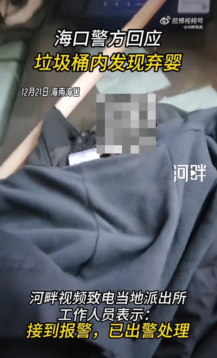 12月21日,据新黄河“河畔视频”报道,12月21日,在海南海口,有网友反映:某小区发现弃婴,脐带未剪,一身血迹,丢弃垃圾桶内。