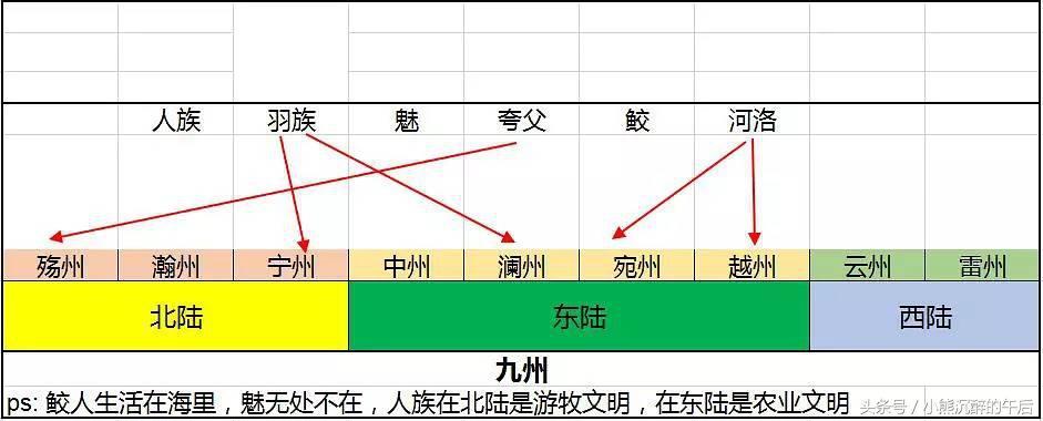 箭头指示的是各个种族的主要生活区域。