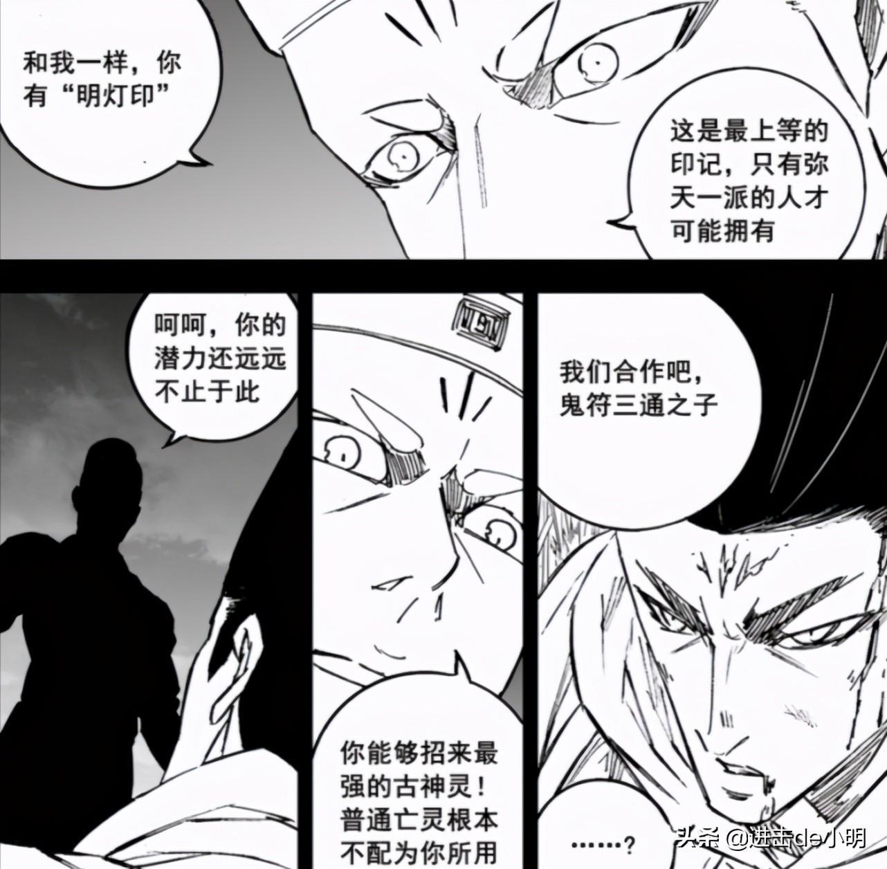故事讲完,应乘风随即发现了龙斗前额的神格印记。这个印记名为“明灯印”,是只有弥天一派才拥有的,最上等的印记。也正是因为如此,应乘风发现了龙斗的价值,提出了合作的想法。他帮助龙斗来释放潜能,而龙斗则帮助自己完成鬼符三通未能完成的使命。此时,玄马出现,告诉应乘风龙棋将的召请仪式已经准备就绪。