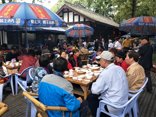 成都拥有全国最多的茶馆达9000余家,上千家的串串香,满大街的火锅店。茶馆随处可见,特别是在一些城乡结合部,至今还能看见木桌、竹椅、茉莉花茶的热闹场景,有老人,也有年轻人,那场面既安逸又生活。