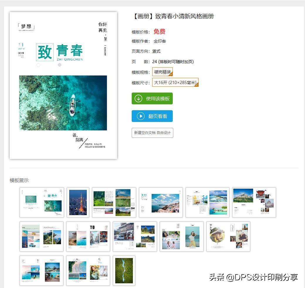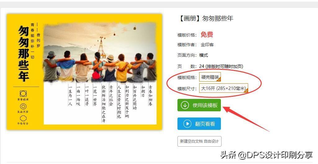 翻页看过之后,觉得还不错,确定“模板规格”和“模板尺寸”,点击“使用该模板”,即可进入编辑页面。