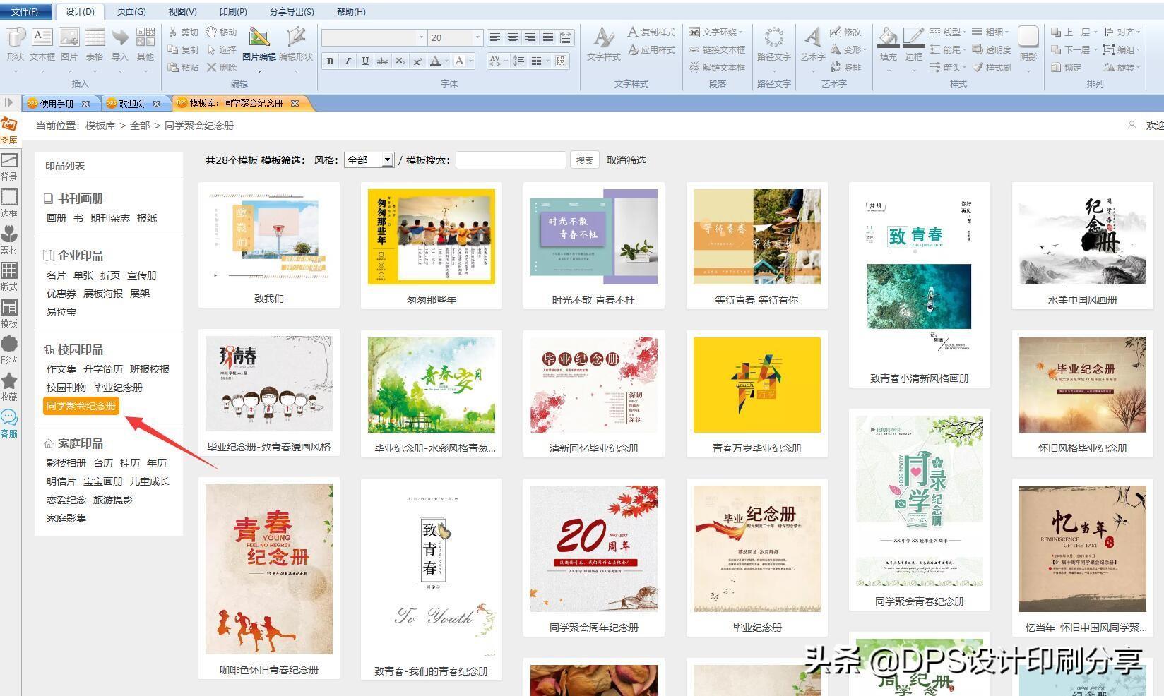 打开金印客排版软件,进入模板库,点击“同学聚会纪念册”,呈现大量模板。