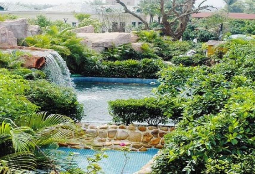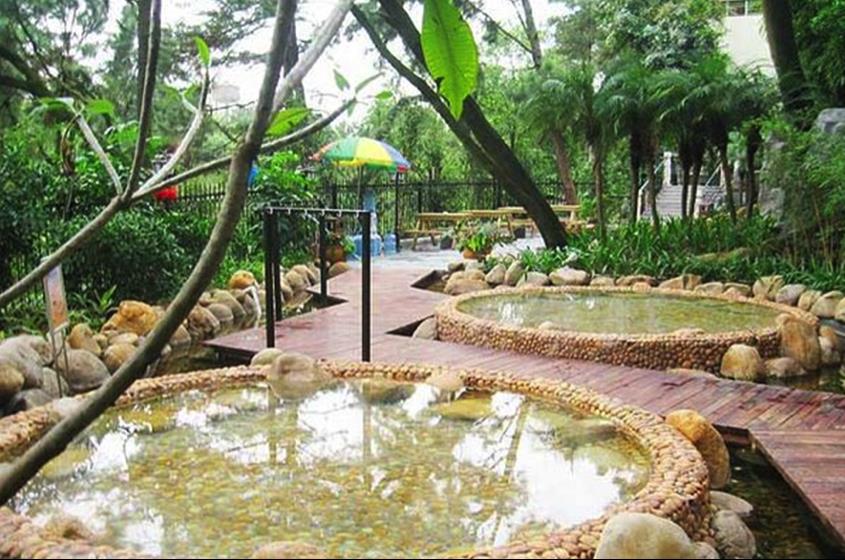 设有各种功效不一的温泉池八十多个,温泉水皆采自地表深180多米,是广东省境内六大温泉之一。新银盏温泉度假村所用温泉水,皆采自距地表深100米以下的温矿泉,是广东省境内六大温泉之一。达到国家环保部地表水环境质量一级标准。采用园林不拘,度假村内山峦起伏,树木葱茏,空气新鲜,出水相拥,为珠三角地区一个难得的“天然氧吧”,在此浸泡温泉,犹如置身世外桃源,感受身、心、身、神的放松与愉悦。