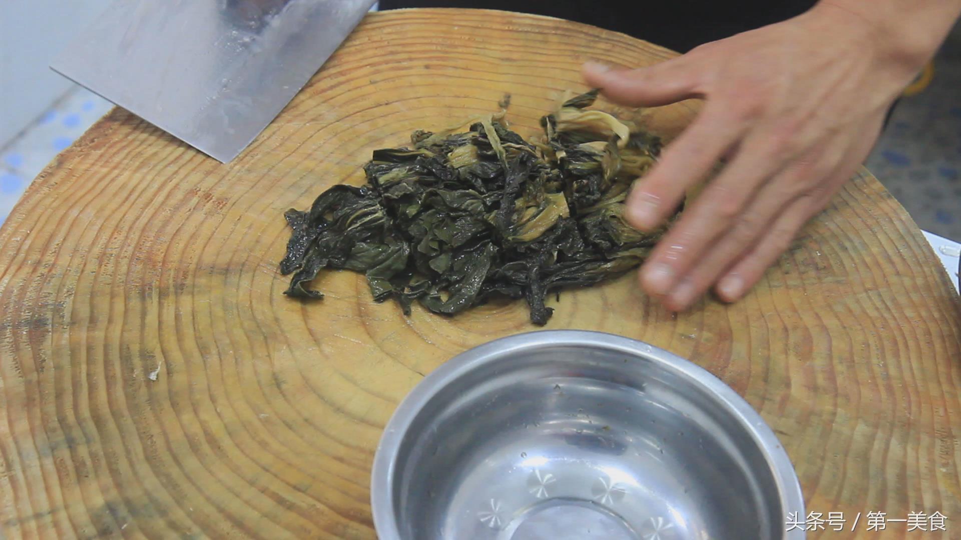 泡发好的梅菜150克,切去根部,切成小段。