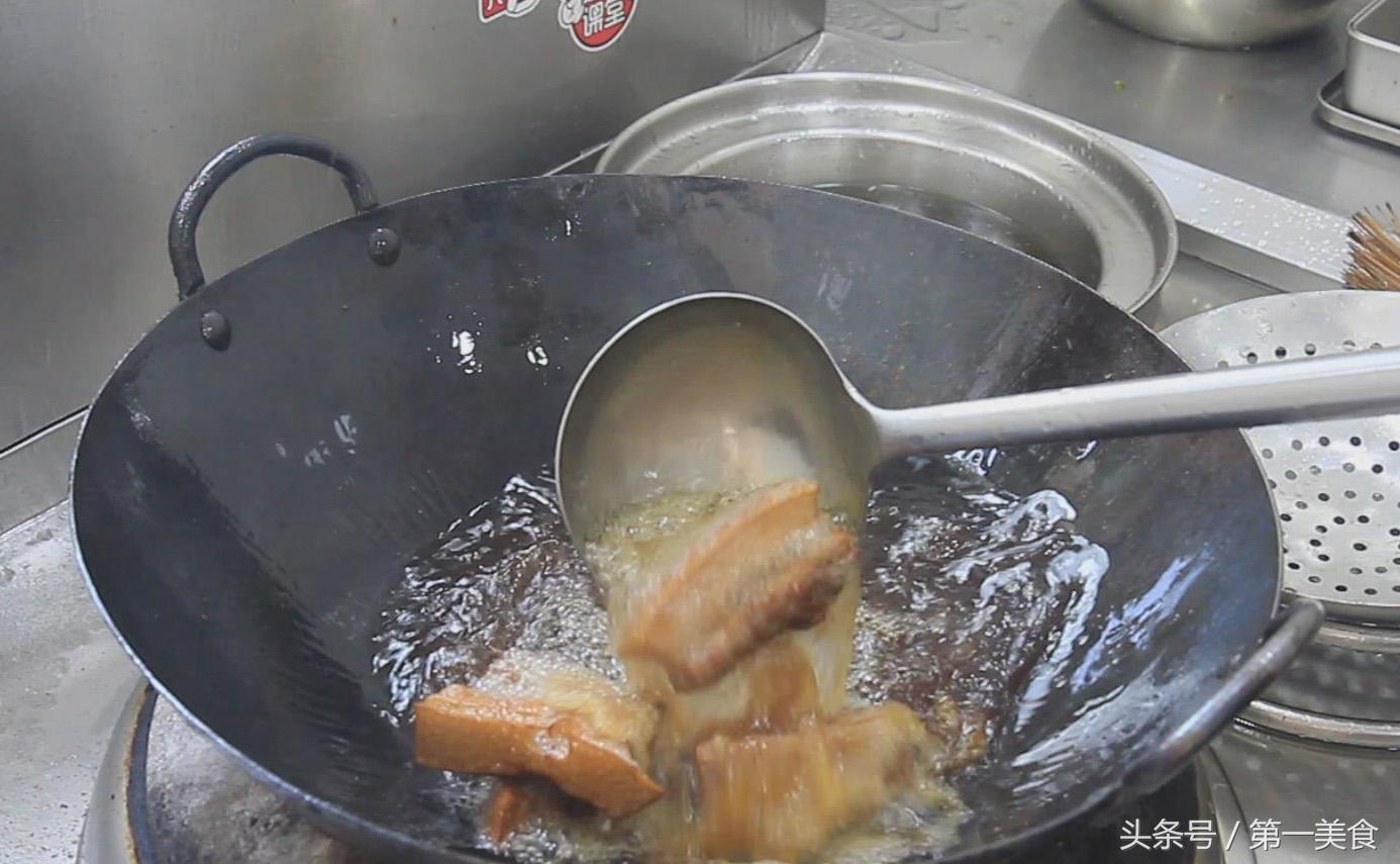 接着再把五花肉块过油炸一下,