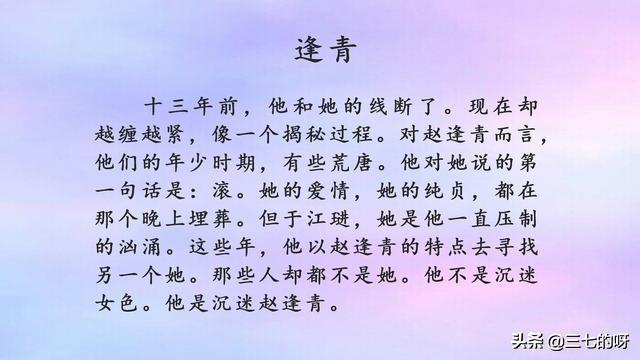 男主江琎,女主赵逢青,久别重逢文。
