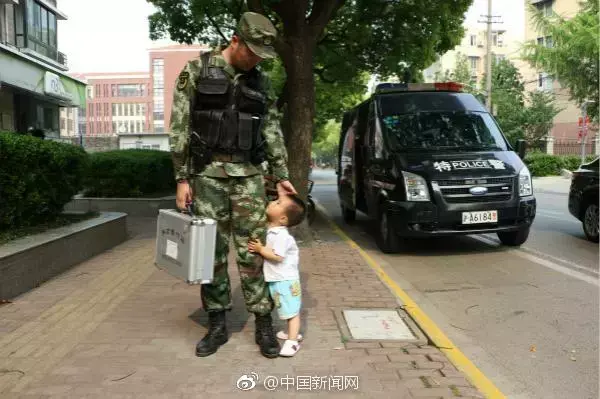 4月30日,武警上海总队的周帆执勤时,遇见了逛街的爱人和儿子。刚满2岁的儿子见到爸爸急忙跑到跟前,"求抱抱"不成就紧紧抱着爸爸的裤腿,哭着拽住爸爸的手,不肯放开…由于任务比较繁重,周帆已近一个月没回家了。他说,儿子还小,可能不明白他拒抱,等儿子长大懂事再告诉他,"你爸爸是军人,请理解爸爸。"(新民晚报)