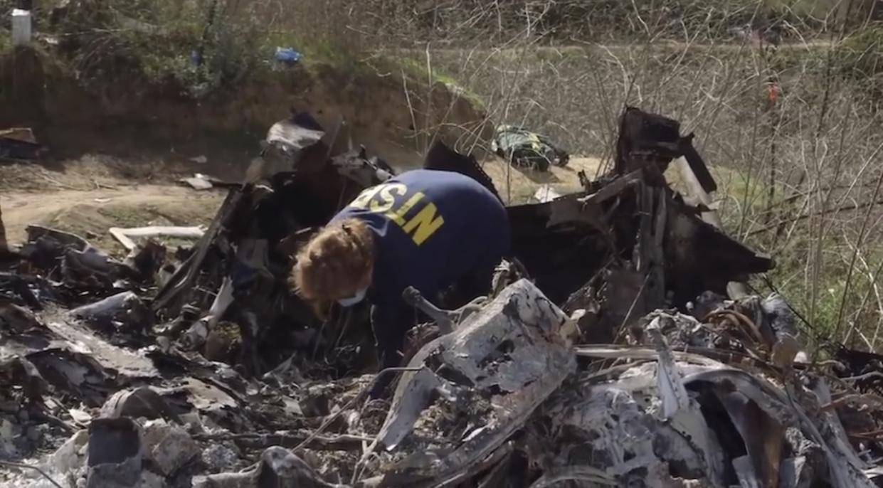 在不幸发生后,美国国家交通运输安全委员会介入了此事,并派出一个18人的团队参与整个行动,包括调查飞机的设计参数,飞行员的飞行纪录,飞机所有者与运营者,今天,这个行动小组公布了现场调查视频,人们得以近距离看到直升机的残骸。