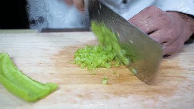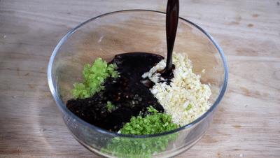 1.将辣椒、香菜、蒜瓣切成末放入碗中