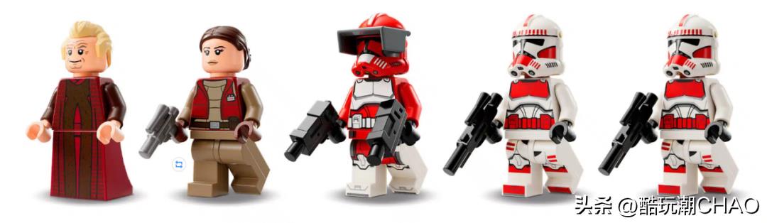 该套装包含5个人仔,其中由福克斯指挥官、帕尔帕廷议长、帕德梅·阿米达拉三个主要角色,外加两名来自科洛桑卫队的克隆人士兵,5个人仔均为该套装的独占人仔。