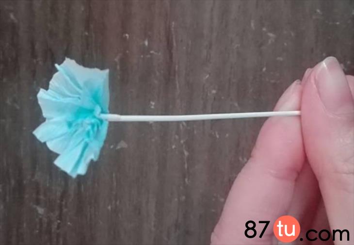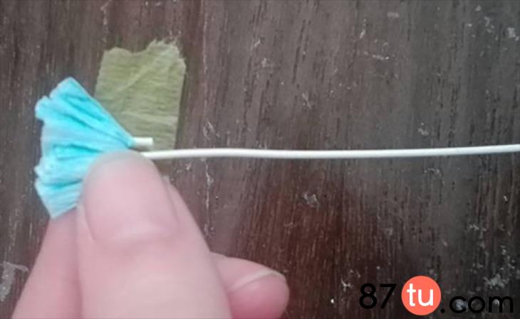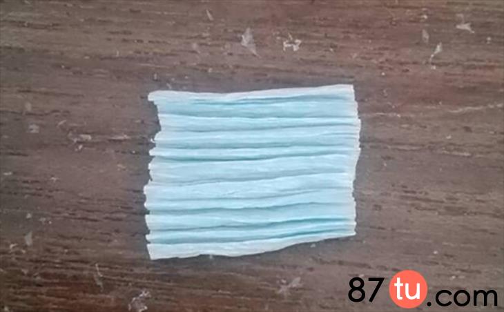 剪一段长5厘米,宽2厘米的皱纹纸。