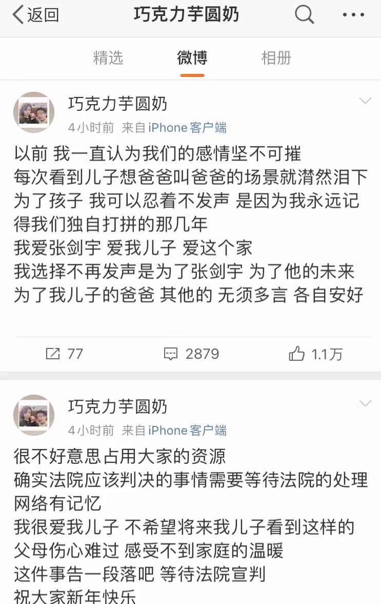 刚刚张九南回应后,其前妻巧克力芋圆奶回复离婚是预谋后,删了微博。再次的回复话里有话,评论区里说我相信法律是公正的。