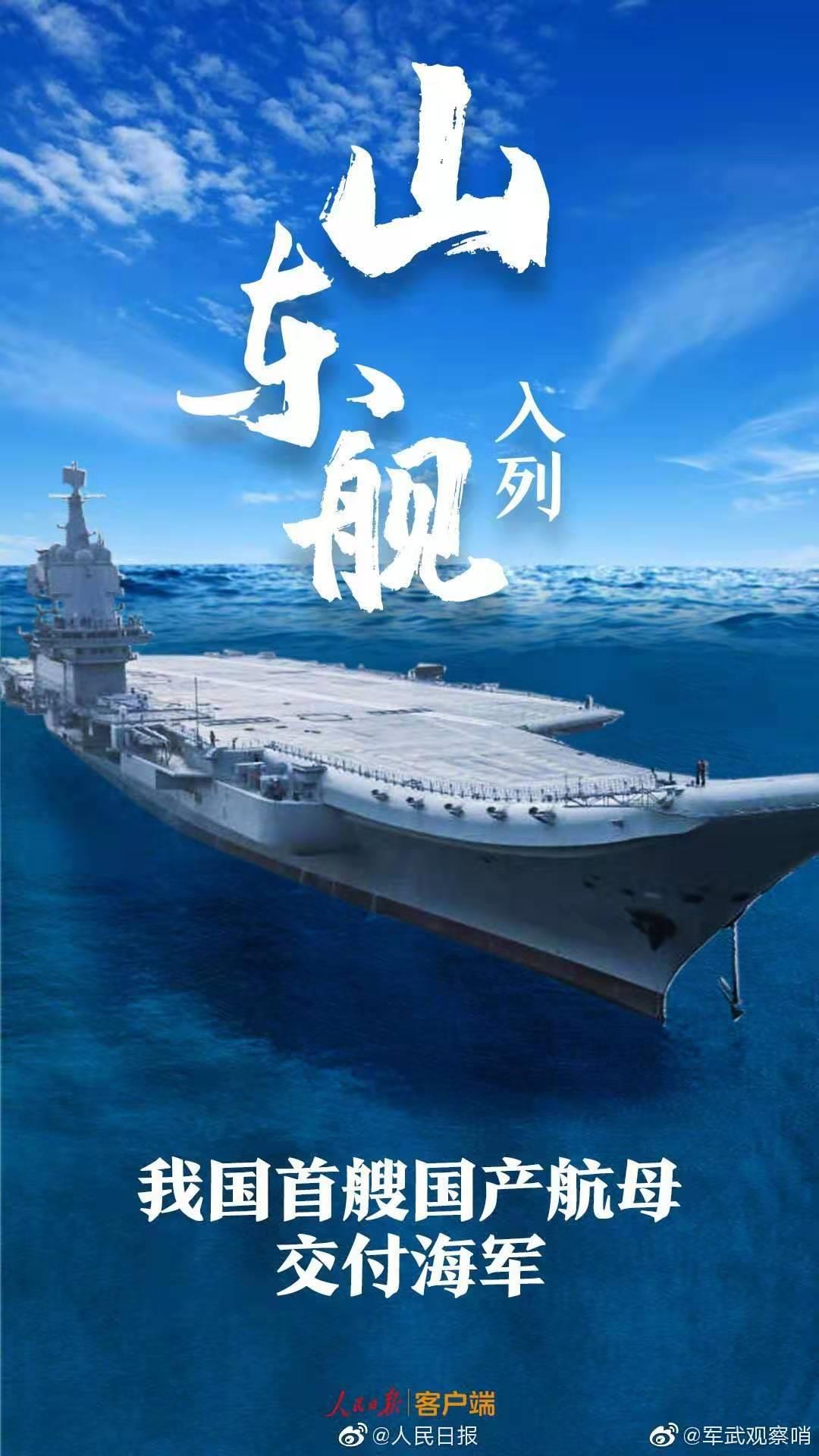 近年来,随着我国科技飞跃进步,科研事业厚积薄发,取得了傲人的成绩,让世界看到了举足轻重的“中国力量”。12月17日,我国第一艘国产航母在海南三亚某军港交付海军。经中央军委批准,该航母被命名为“中国人民解放军海军山东舰”,舷号为“17”。早在2012年9月25日,辽宁舰已开始服役,随着此次山东舰的正式服役,标志着中国正式进入“双航母时代”。
