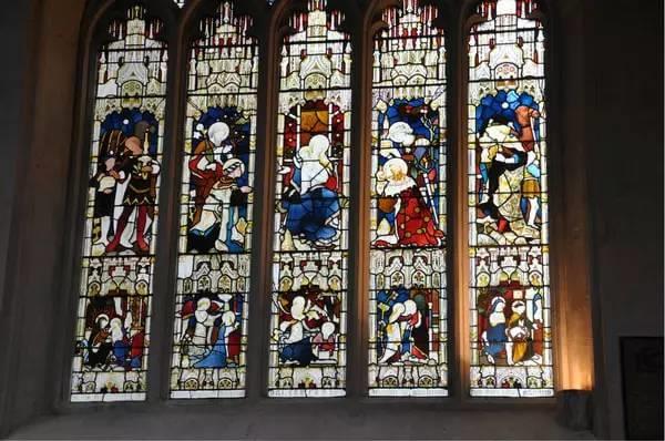 进入教堂,眼前是气势雄伟的大礼堂,这里的独特之处是那些色彩绚丽的彩绘玻璃窗,上面刻绘着耶稣的事迹和基督教中的神话故事,共有56幅。